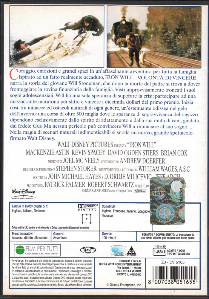 | Titolo: | IRON WILL VOLONTA’ DI VINCERE Walt Disney DVD Ita. Ologramma Rettangolare (Z3-DV5165) |