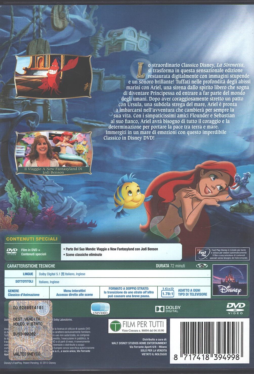 La sirenetta (Walt Disney) – Edizione Speciale – DVD in Italiano – Senza Ologramma