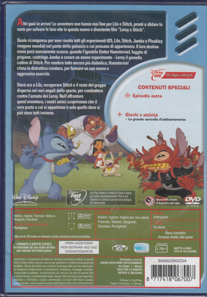 | Titolo: | Leroy & Stitch Walt Disney DVD in Italiano. Ologramma Rettangolare |