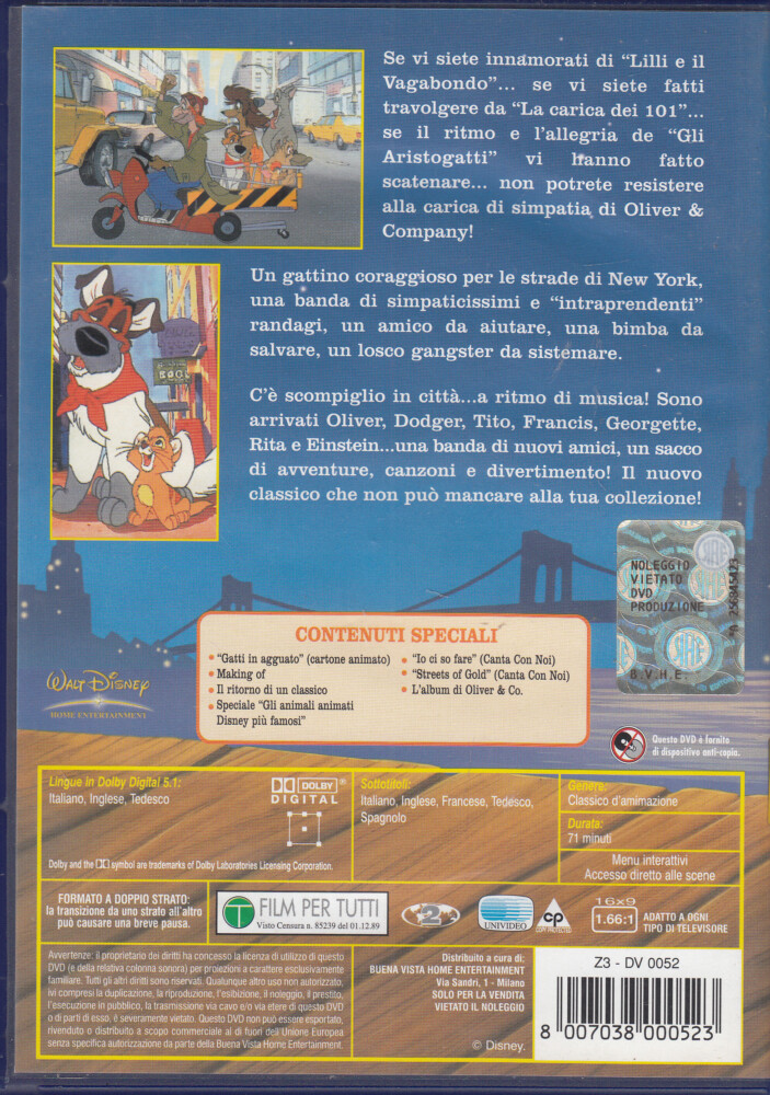 | Titolo: | Oliver & Company – Walt Disney Classici – DVD in Italiano (Ologramma Rettangolare) |