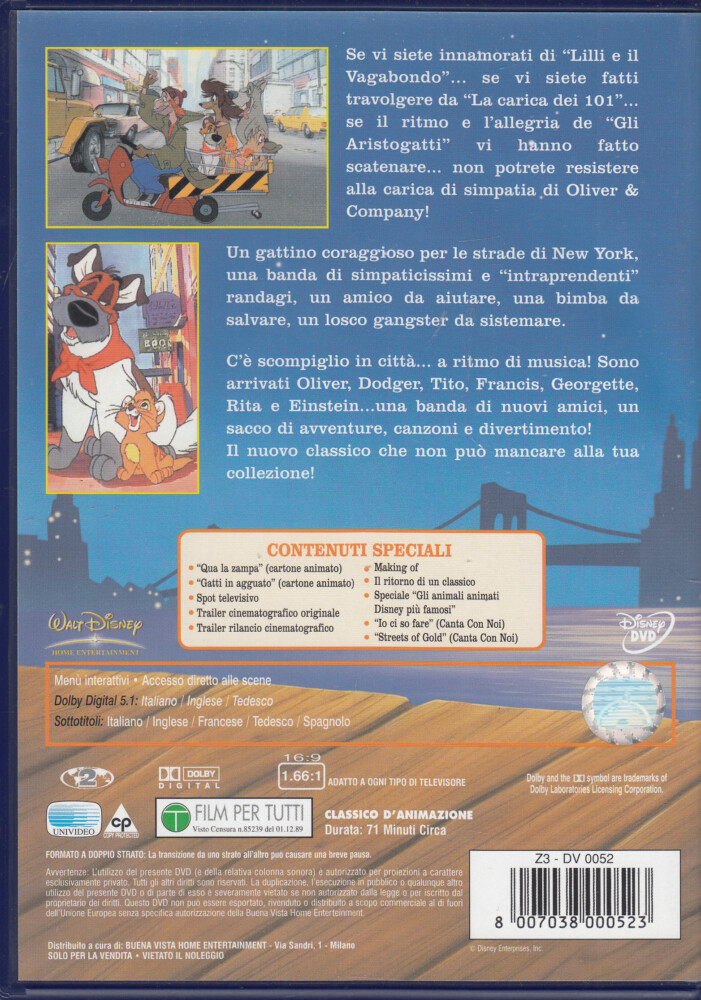 | Titolo: | Oliver & Company. I Classici di Walt Disney DVD in Italiano. Ologramma Tondo (Z3-DV0052) |
