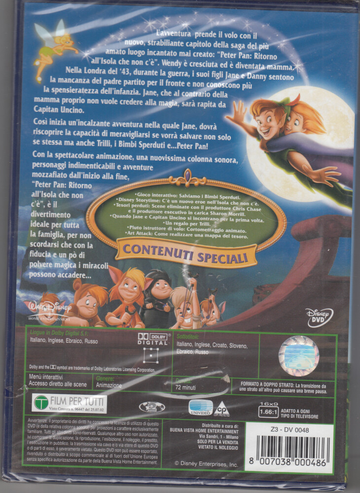 | Titolo: | Peter Pan Ritorno All’Isola Che Non C’e’ Walt Disney DVD Ita. Ologramma Tondo (Z3-DV0048) |