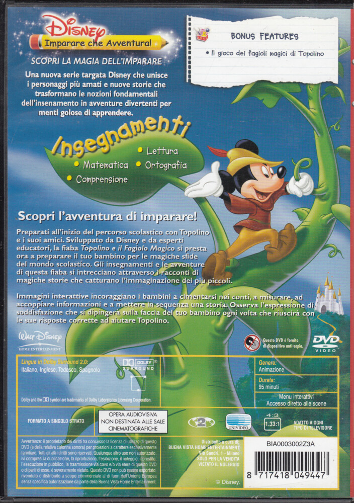 | Titolo: | Topolino e il fagiolo magico – Imparare che avventura Conta e Leggi Divertendoti DVD in Italiano |