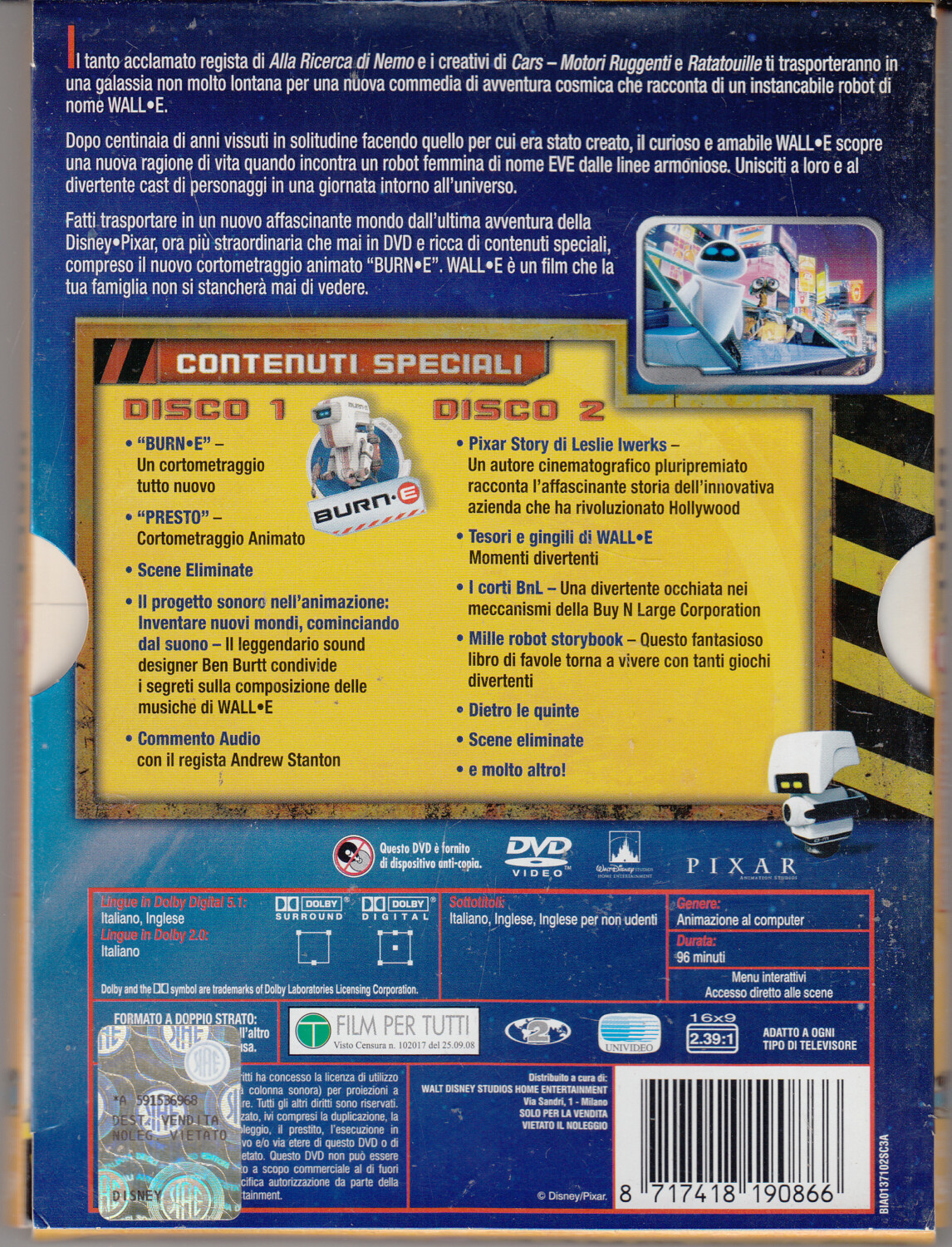 | Titolo: | Wall-E. Edizione Speciale n. 2 DVD in Italiano con Slipcase. Disney Pixar |