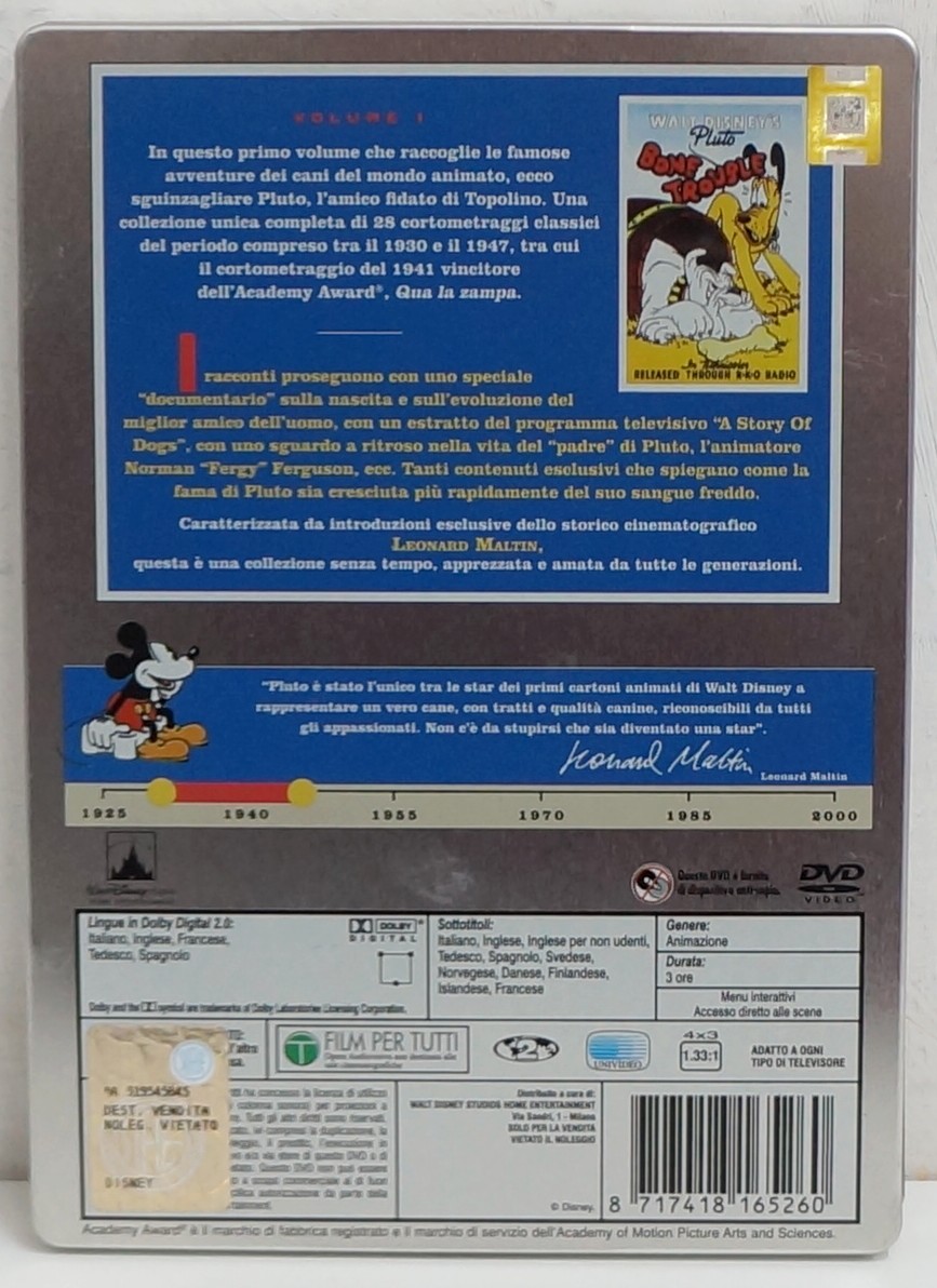 Walt Disney Treasures: Pluto Volume 1. La Collezione Completa con n. 2 DVD in Italiano. Custodia Steelbook