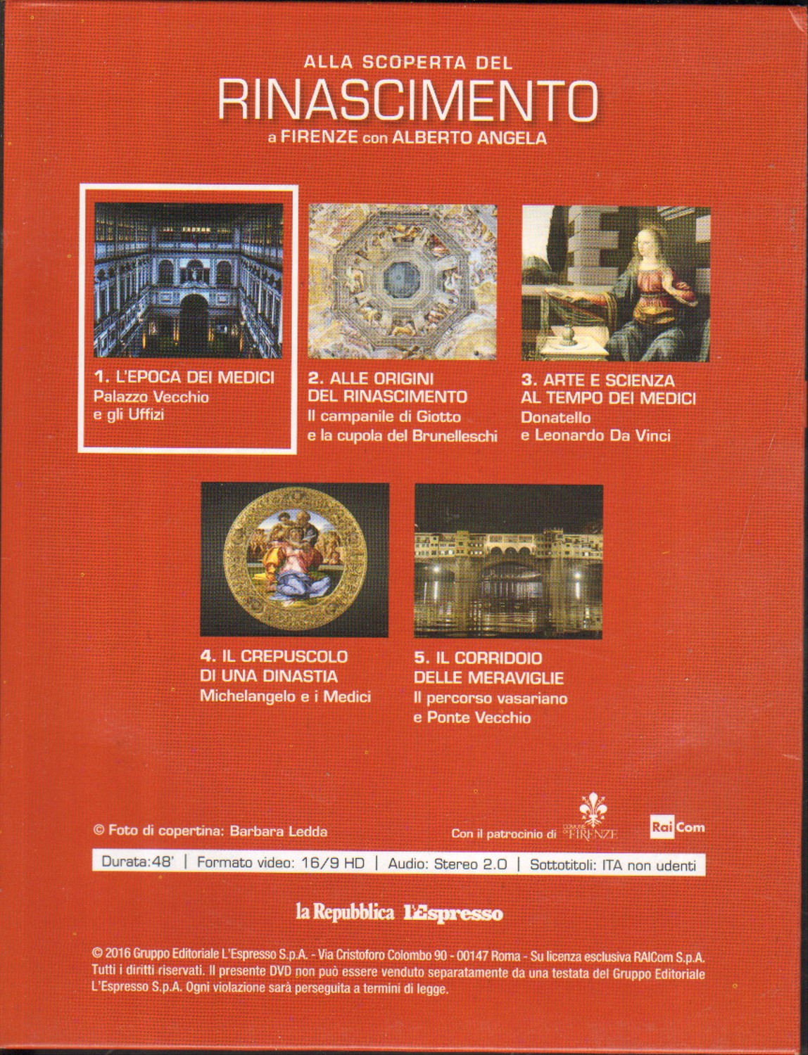 Alla Scoperta del Rinasicmento a Firenze con Alberto Angela. Raccola Completa n. 5 DVD in Italiano. Versione da edicola