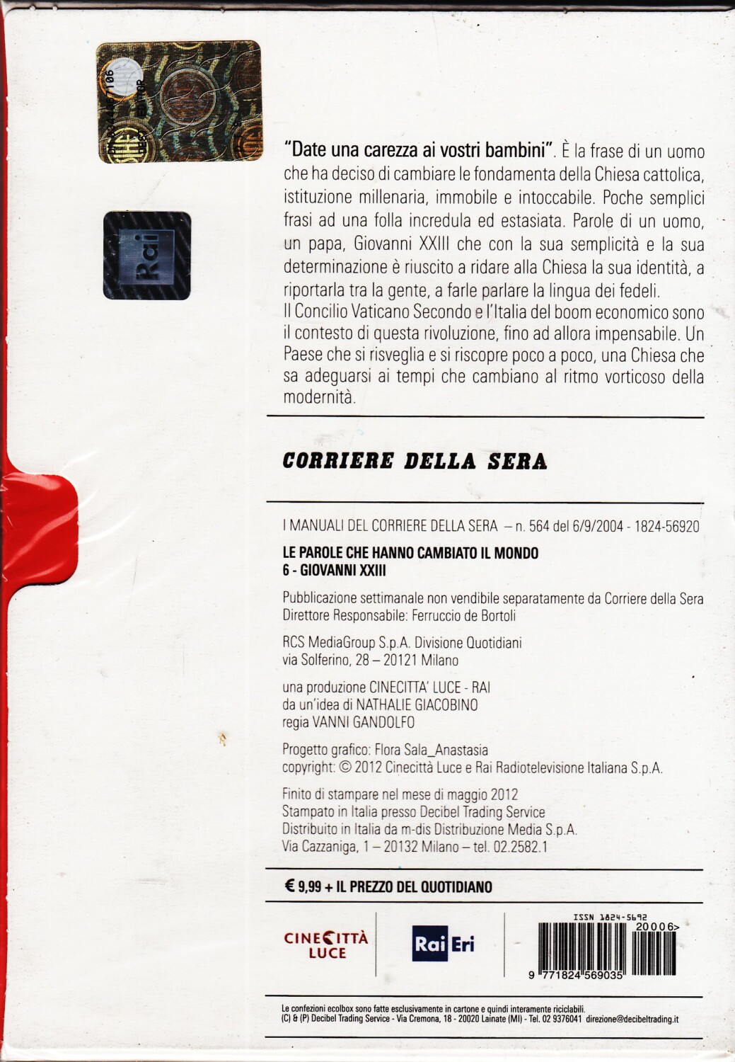 | Descrizione: | Giovanni XXIII: Discorso alla luna. Roma 11 ottobre 1962. Custodia formato Slim in cartoncino. Versione da edicola. |