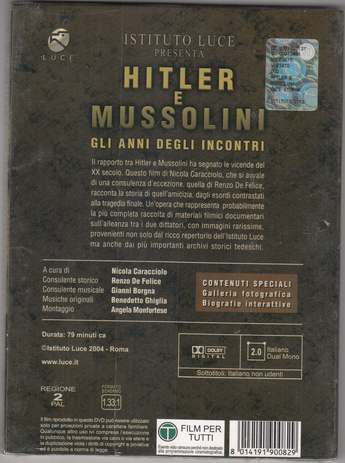 Hitler E Mussolini .Gli Anni Degli Incontri DVD in Italiano