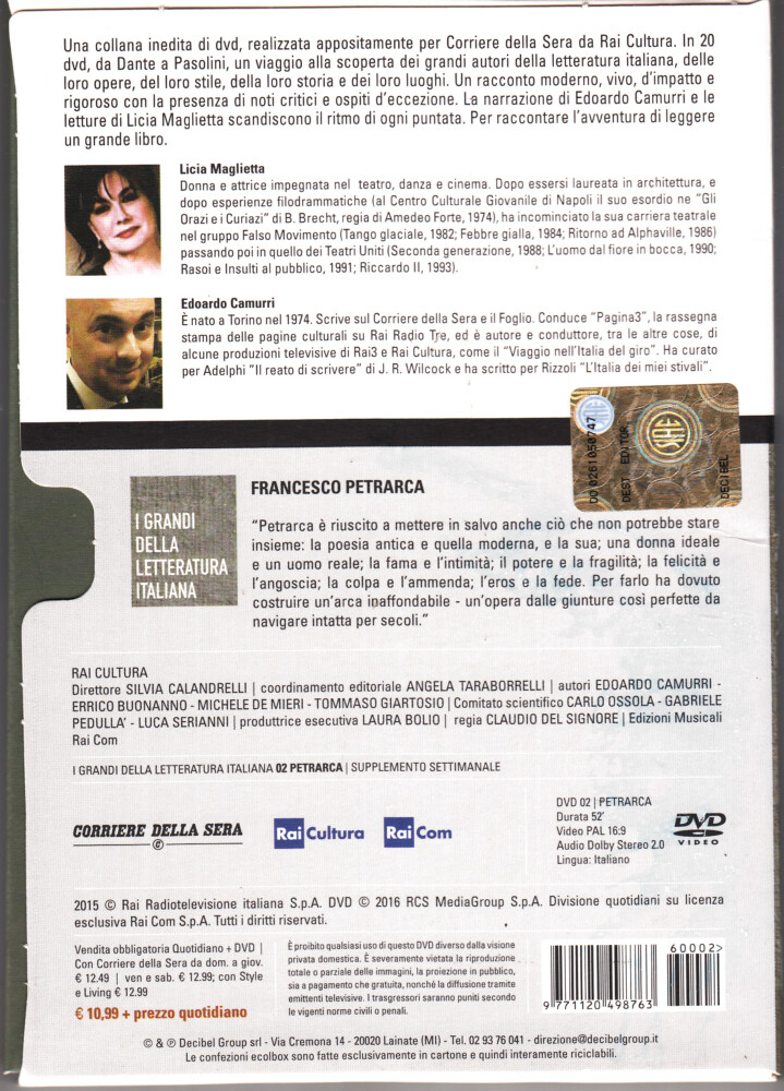 I Grandi della Letteratura Italiana Raccolta Completa in Cofanetto con n. 20 DVD. Editoriale