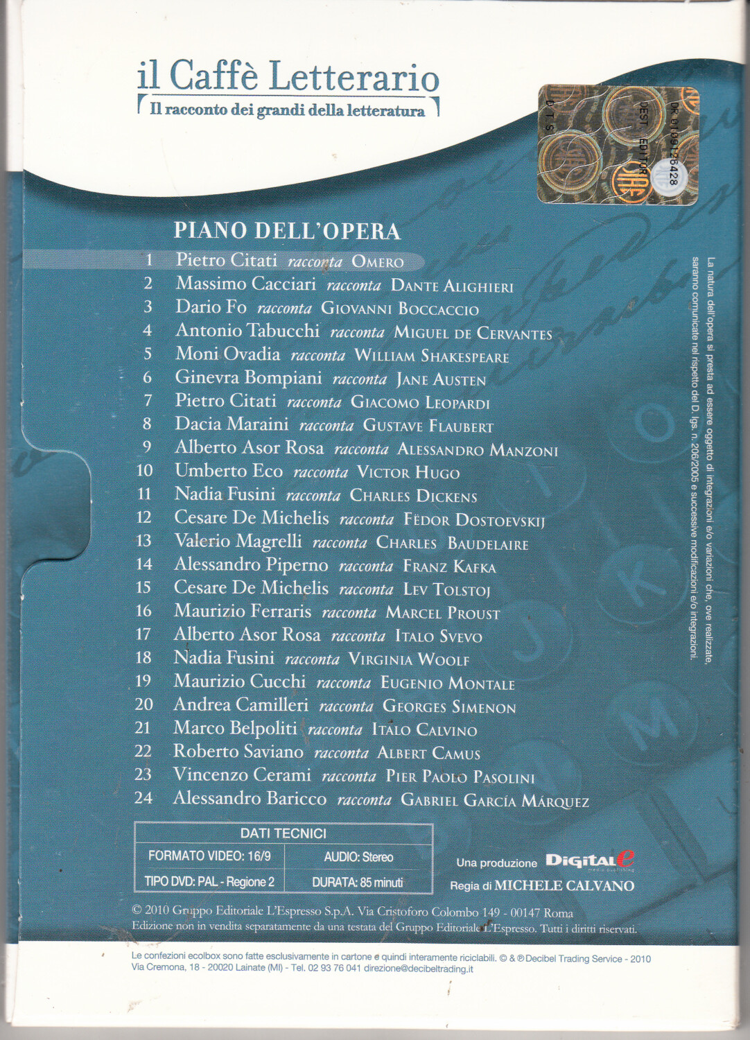 | Titolo: | Il Caffe’ Letterario. Opera Completa con n. 25 DVD in Italiano con Cofanetto. Versione da Edicola |