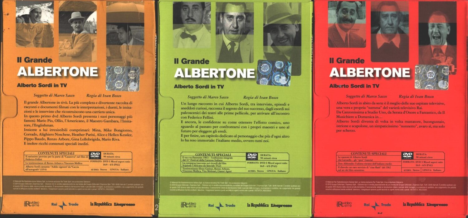 | Titolo: | Il grande Albertone – Alberto Sordi in TV – (3 DVD) Raccolta NON COMPLETA – Versione da edicola – DVD in Italiano |
