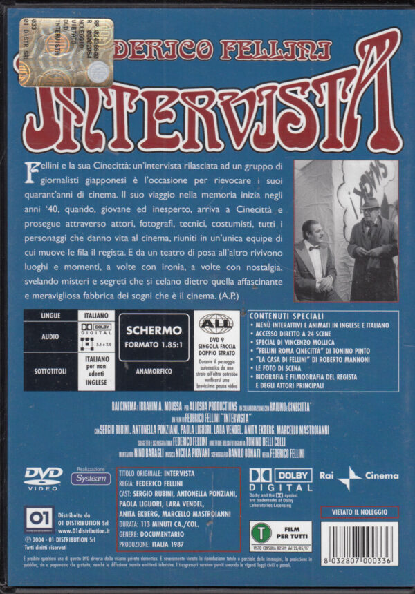 | Titolo: | Intervista DVD in Italiano di Federico Fellini |