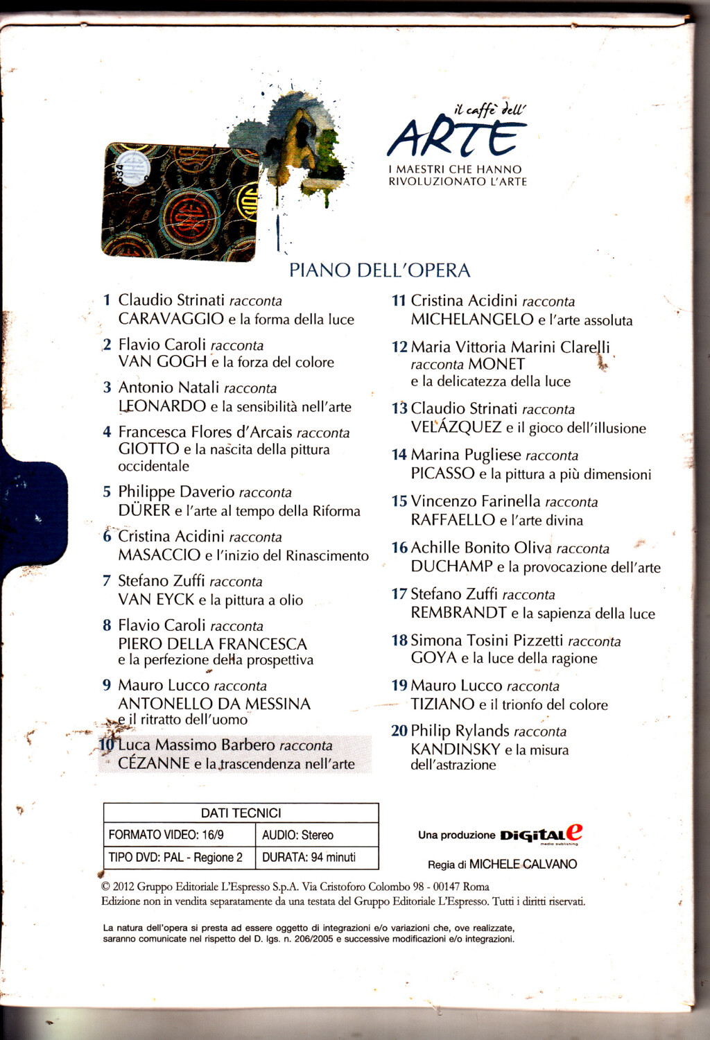 | Titolo: | Cezanne e la trascendenza nell’arte (Luca Massimo Barbero) – DVD Il caffè dell’Arte vol. 10 – Versione da edicola – DVD in Italiano |