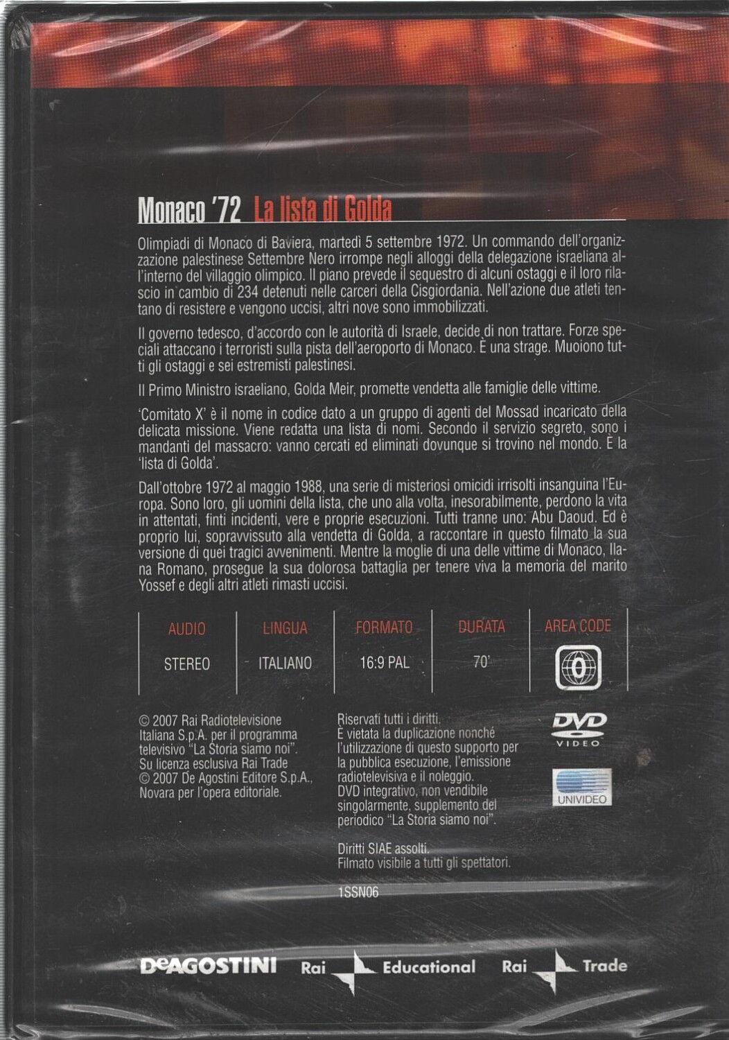 | Titolo: | Monaco ’72 La lista di Golda – DVD La Storia siamo noi (vol. 6) – Versione da edicola – DVD in Italiano |
