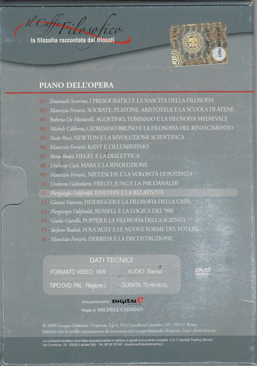 | Titolo: | Il Caffè filosofico vol. 11 – DVD Einstein e la relatività (Piergiorgio Odifreddi) – Versione da edicola – DVD in Italiano |