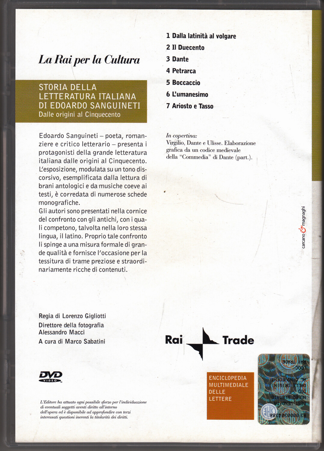 | Titolo: | Storia Letteratura Italiane Dalle Origini al Cinquecento di Sanguineti n. 7 DVD in Italiano |
