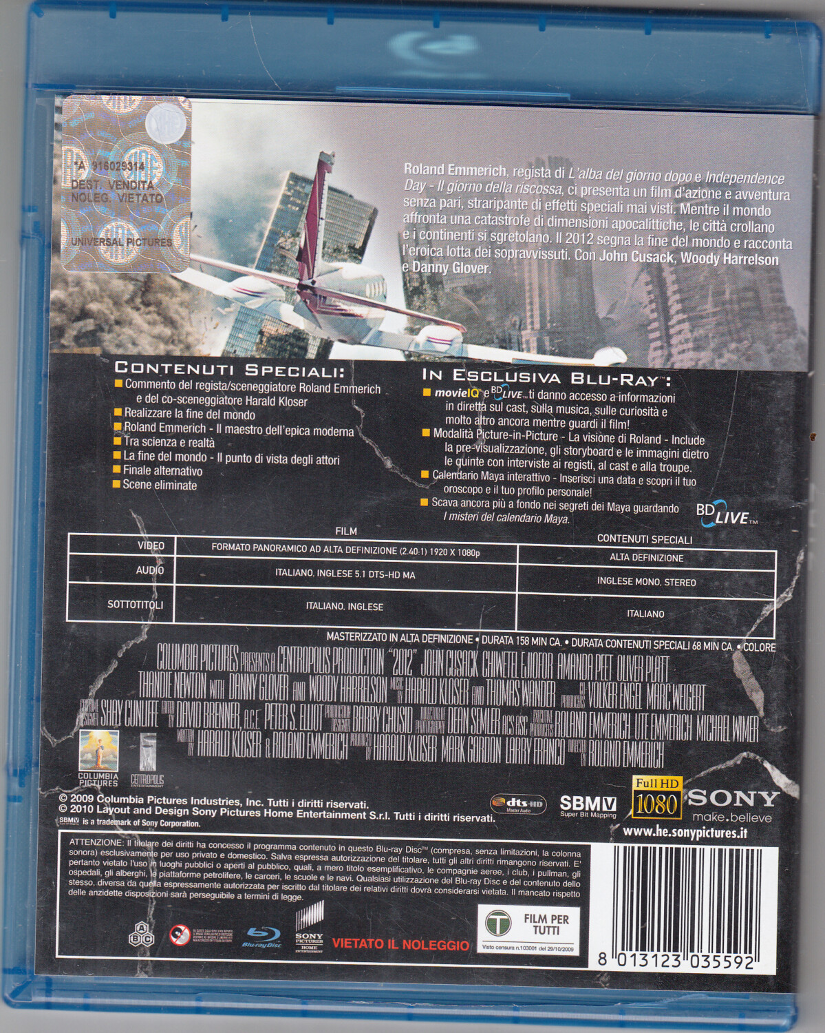 | Titolo: | 2012 Blu-ray in Italiano Roland Emmerich |