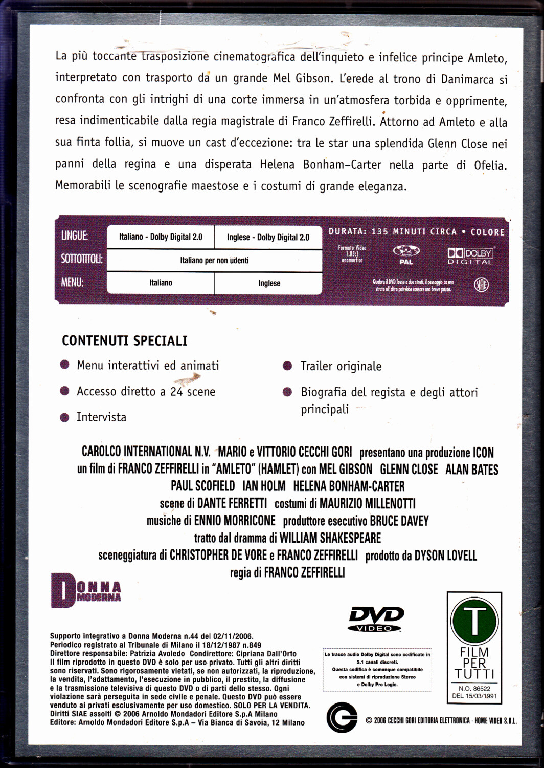 | Titolo: | Amleto (William Shakespeare) – Versione da edicola. DVD in Italiano |