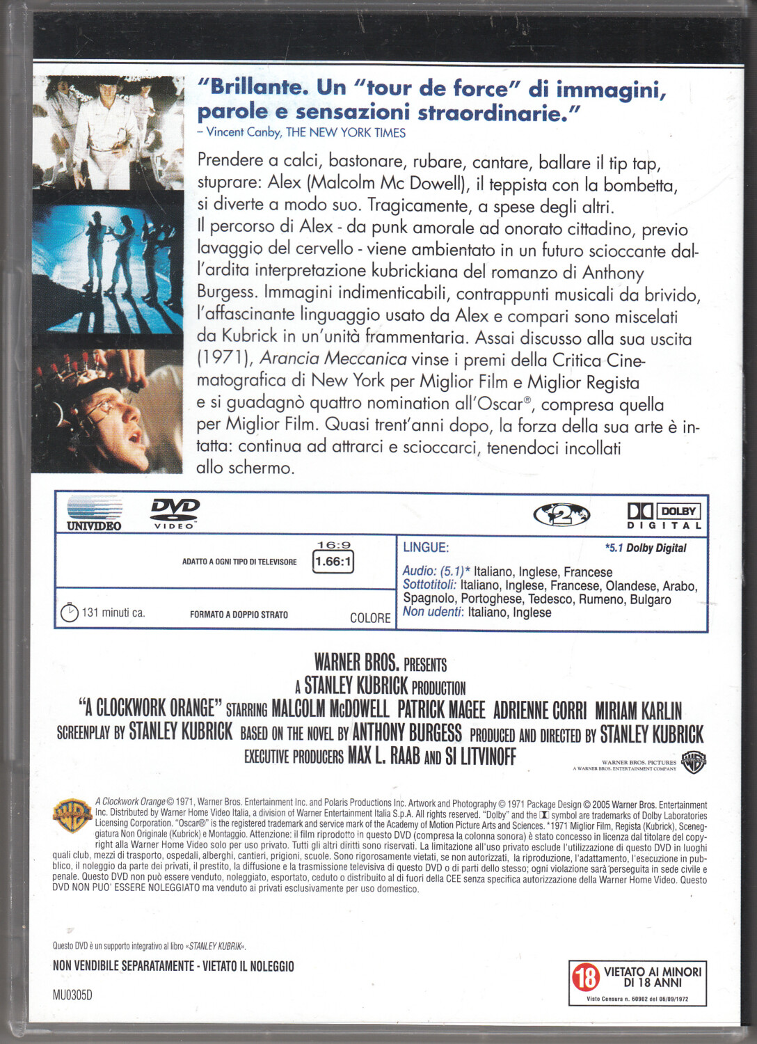 | Titolo: | Arancia meccanica. I Grandi Registi: Stanley Kubrick. Libro + DVD in Italiano con Cofanetto. Versione da edicola |