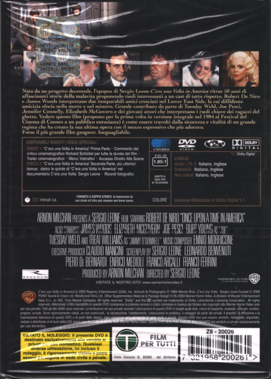 | Titolo: | C’era una volta in America un film di Sergio Leone. Edizione Speciale con n. 2 DVD in Italiano con Cofanetto. Nuovo |