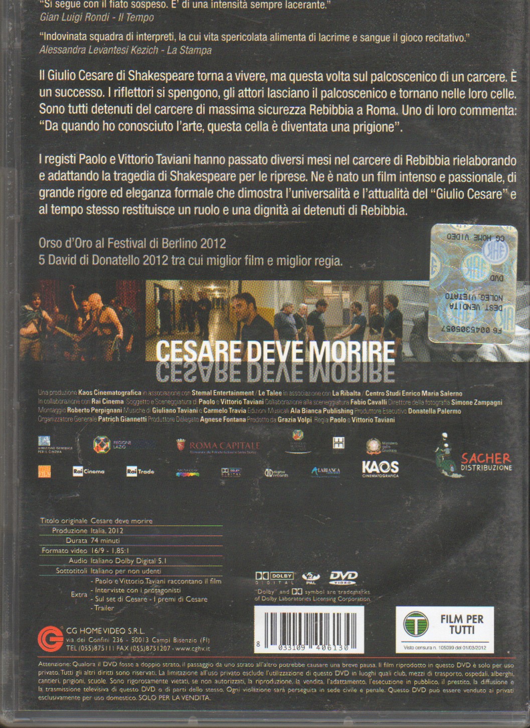 | Titolo: | Cesare Deve Morire un film di Vittorio Taviani DVD in Italiano |