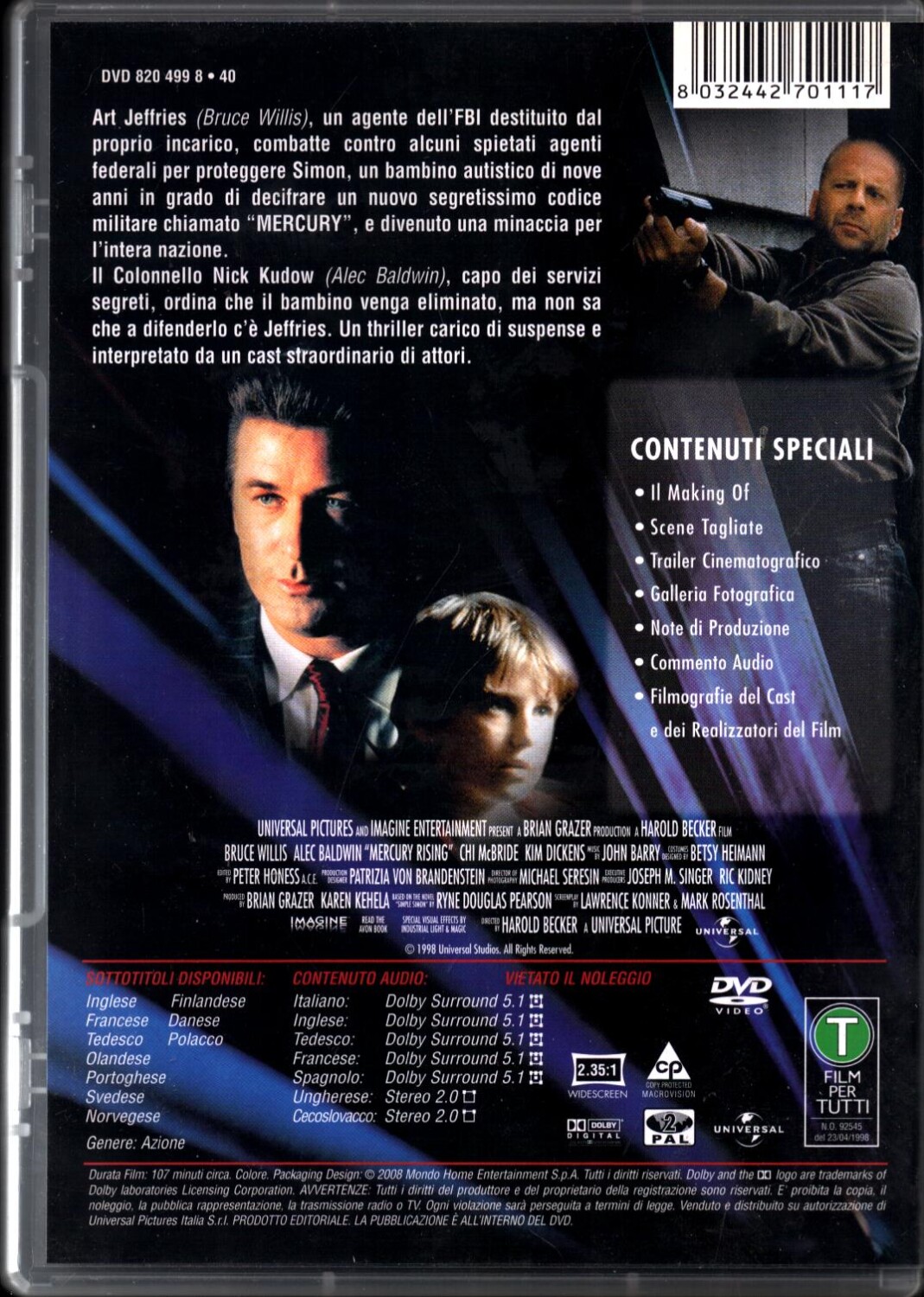 | Titolo: | Codice Mercury DVD in Italiano Bruce Willis |