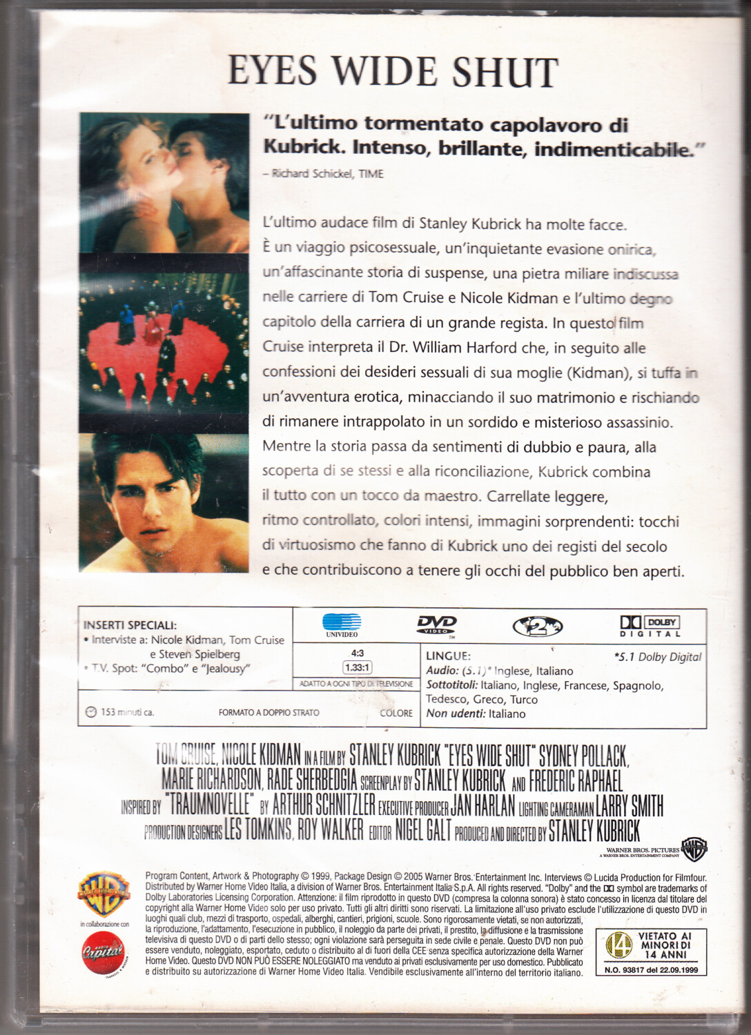 | Titolo: | Eyes wide shut – DVD I Capolavori di Stanley Kubrick vol. 4 – Versione da edicola – DVD in Italiano |