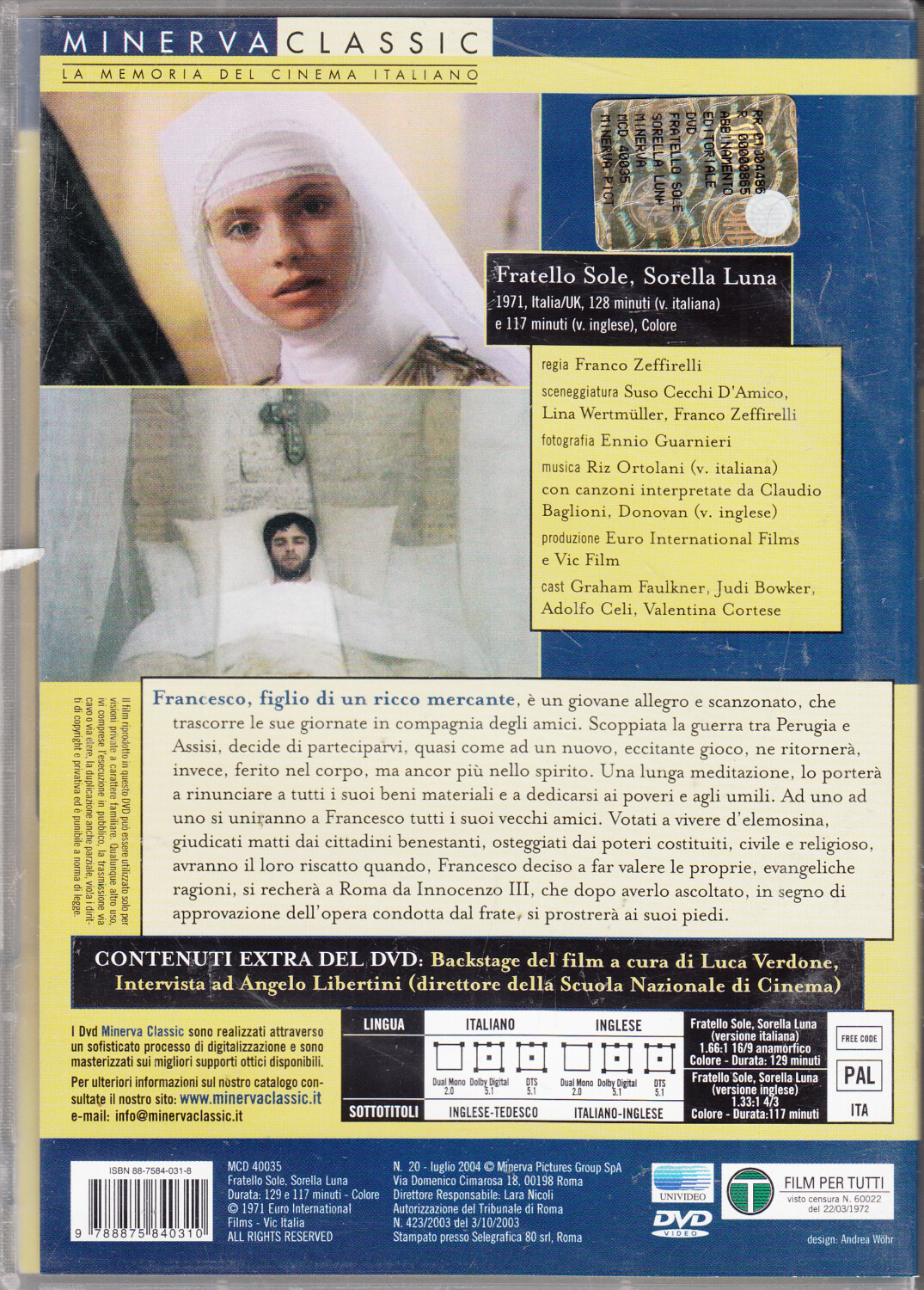 | Titolo: | Fratello Sole Sorella Luna un film di Franco Zeffirelli. Con n. 2 DVD in Italiano. Versione da edicola |