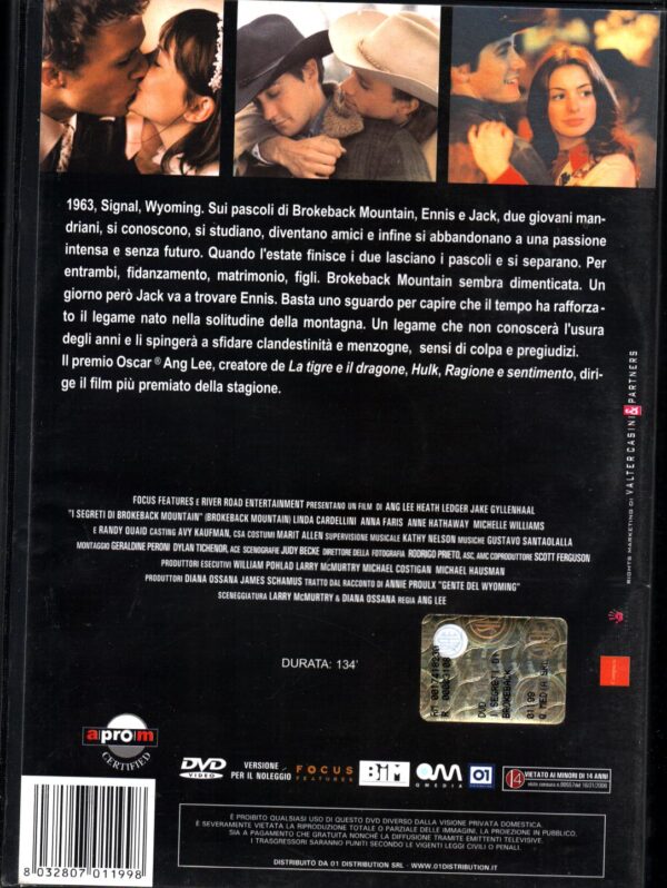 | Titolo: | I segreti si Brokeback Mountain con Anne Hathaway. DVD in Italiano. Versione Noleggio |
