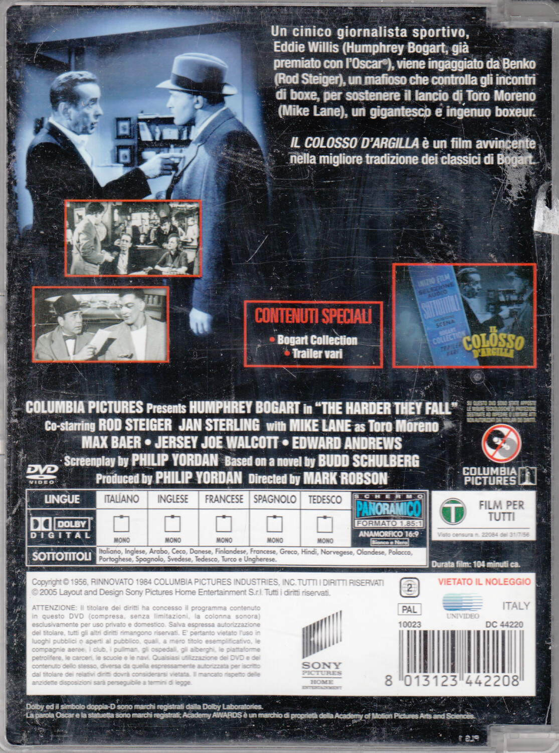 | Titolo: | Il colosso d’argilla con Humphrey Bogart. DVD in Italiano. Custodia Jewel Box |