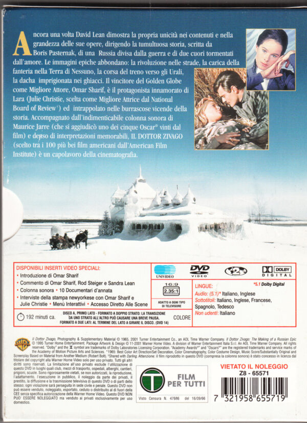 | Titolo: | Il dottor Zivago con Omar Sharif. Edizione Speciale con n. 2 DVD in Italiano con Cofanetto |