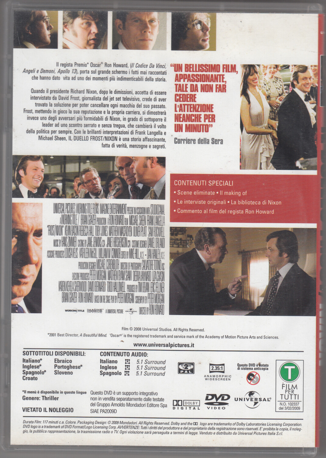 | Titolo: | Il Duello Frost Nixon con Michael Sheen. DVD in Italiano. Versione Edicola |