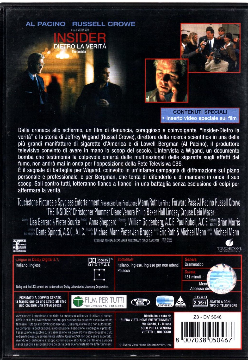 Insider-Dietro La Verita’ DVD in Italiano Russel Crowe