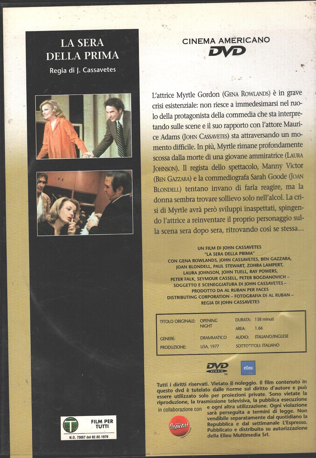 | Titolo: | La sera della prima – DVD Cinema Americano (vol. 15) – Versione da edicola – DVD in Italiano |