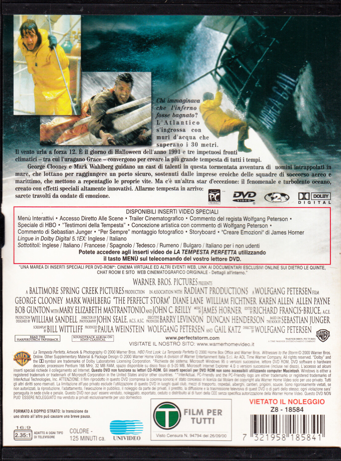 | Titolo: | La Tempesta Perfetta con George Clooney. DVD in Italiano. Custodia Snapper |