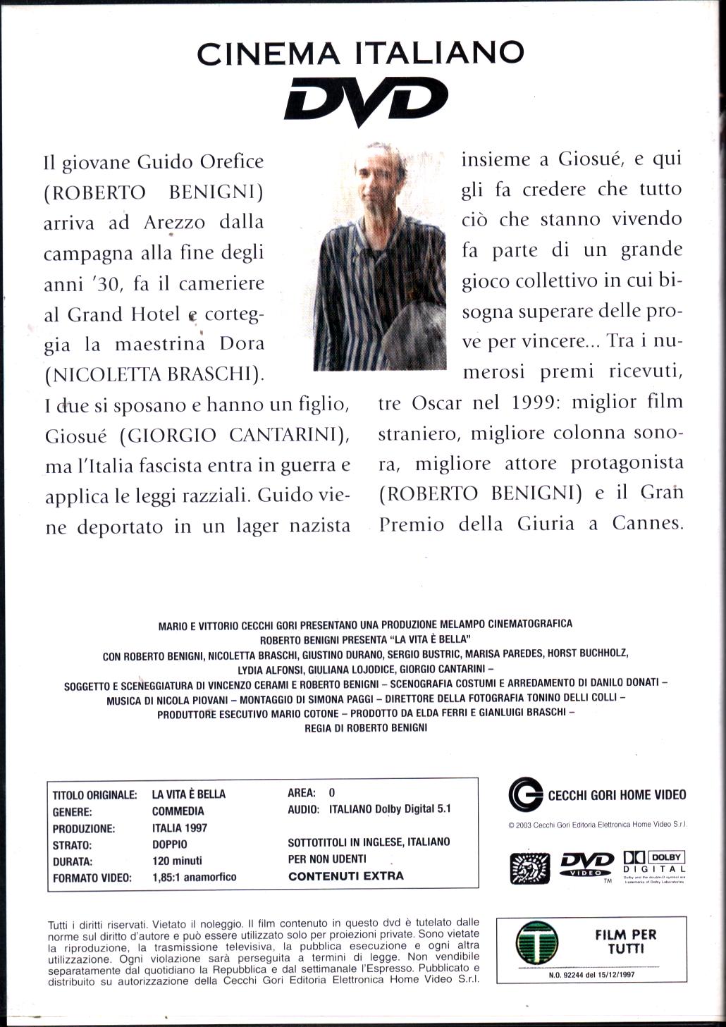 La Vita e Bella DVD in Italiano Versione da edicola Roberto Benigni