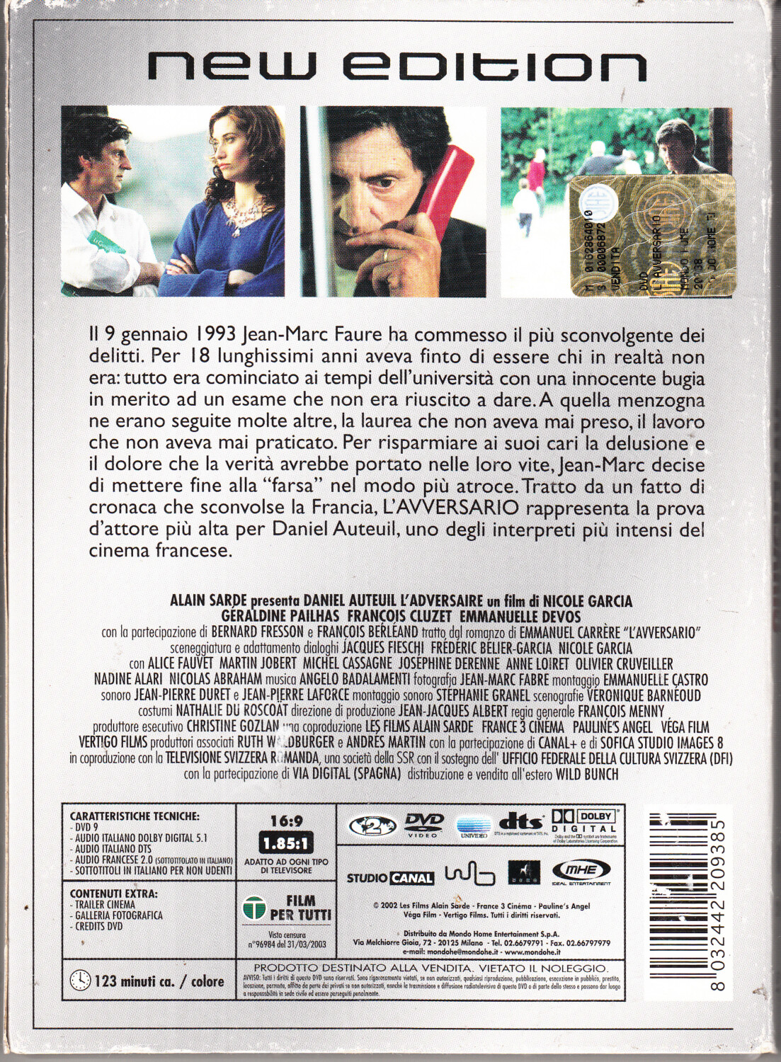 | Titolo: | L’Avversario con Daniel Auteuil. DVD in Italiano con Slipcase |