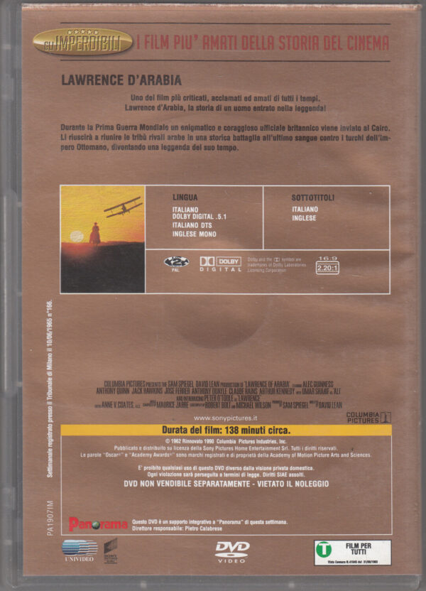 | Titolo: | Lawrence d’Arabia – (2 DVD) Gli Imperdibili vol. 2 – Versione da edicola – DVD in Italiano |