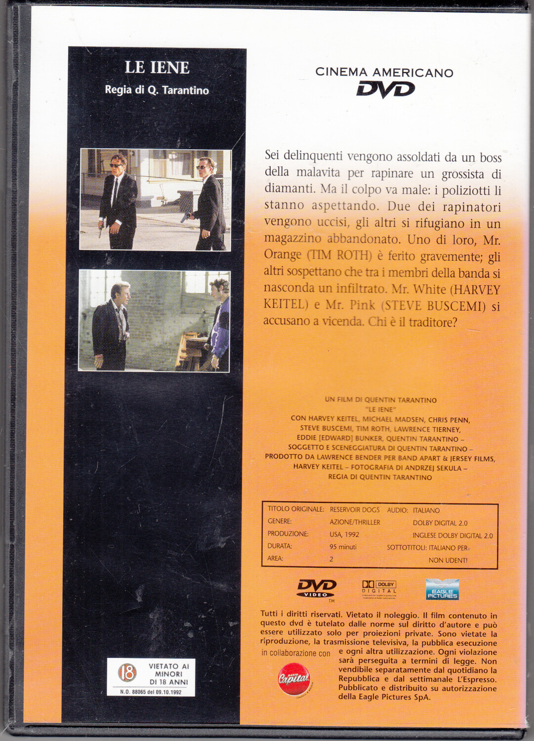 | Titolo: | Le Iene (Quentin Tarantino) – DVD Cinema Americano vol. 13 – Versione da edicola – DVD in Italiano |