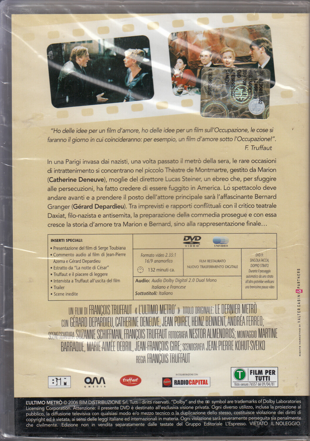 L’ultimo metro’ (François Truffaut) Versione da edicola. DVD in Italiano