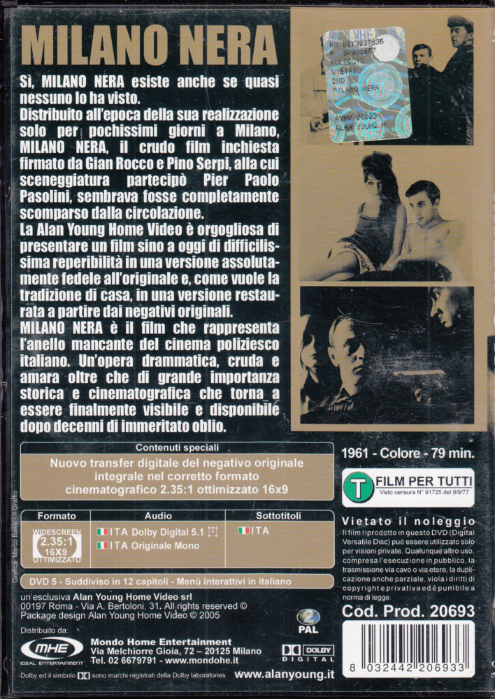 | Titolo: | Milano Nera un film di Gian Rocco e Pino Serpi DVD in Italiano |