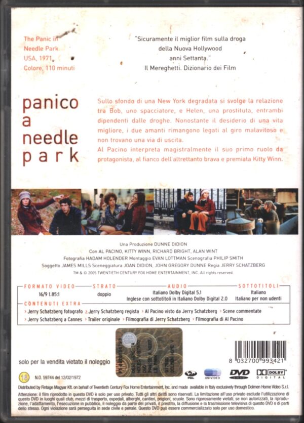 | Titolo: | Panico a Needle Park DVD in italiano con Al Pacino e Kitty Winn |