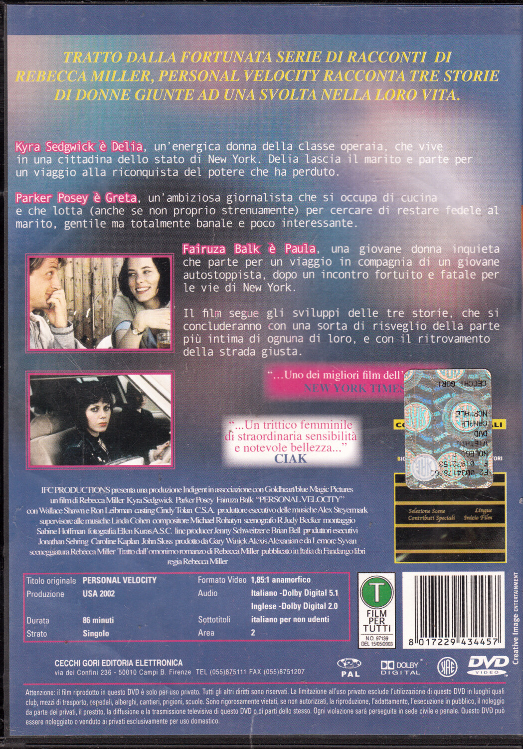 Personal Velocity. Il Momento Giusto un film di Rebecca Miller. DVD in Italiano