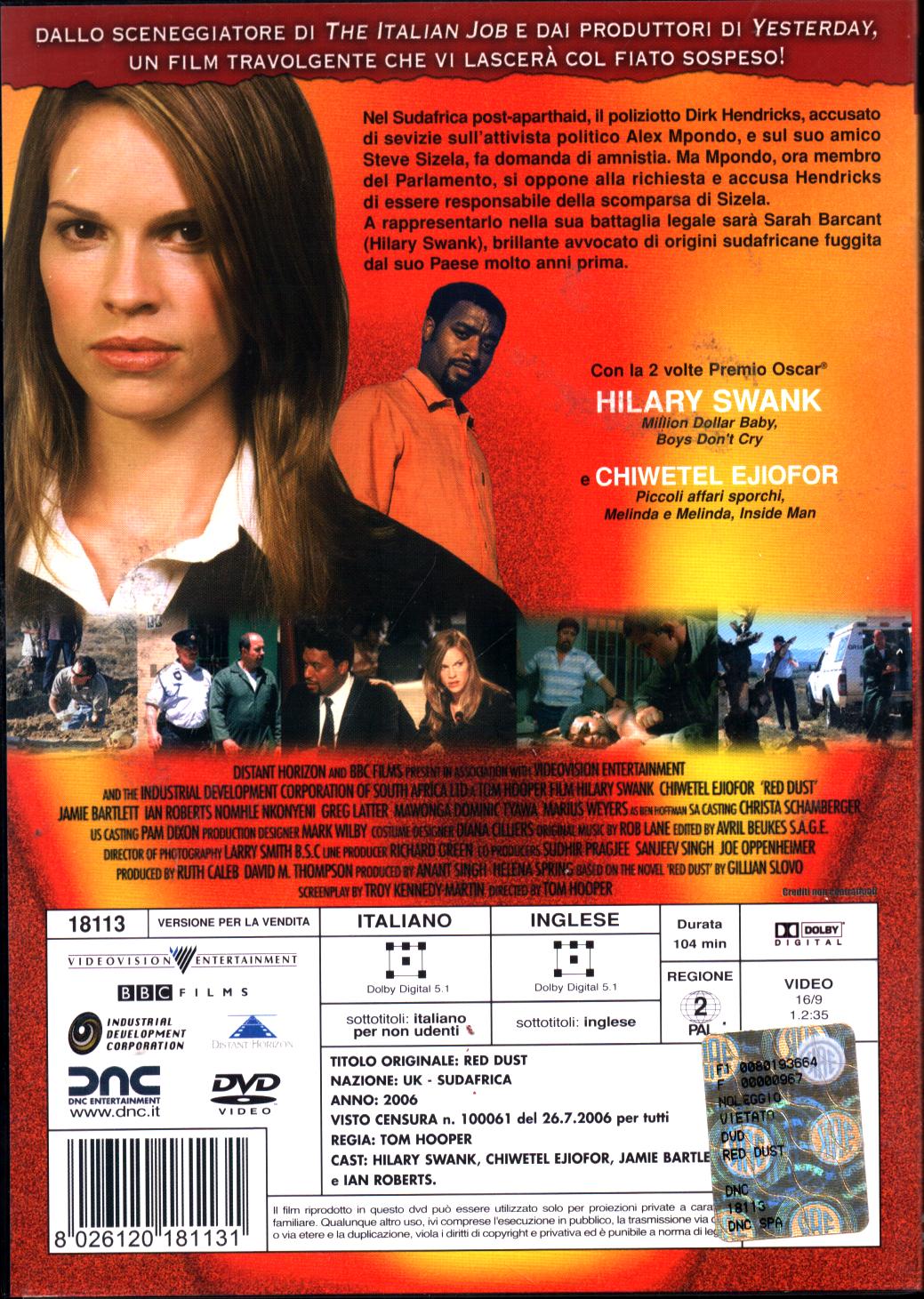 Red dust DVD in Italiano Hilary Swank