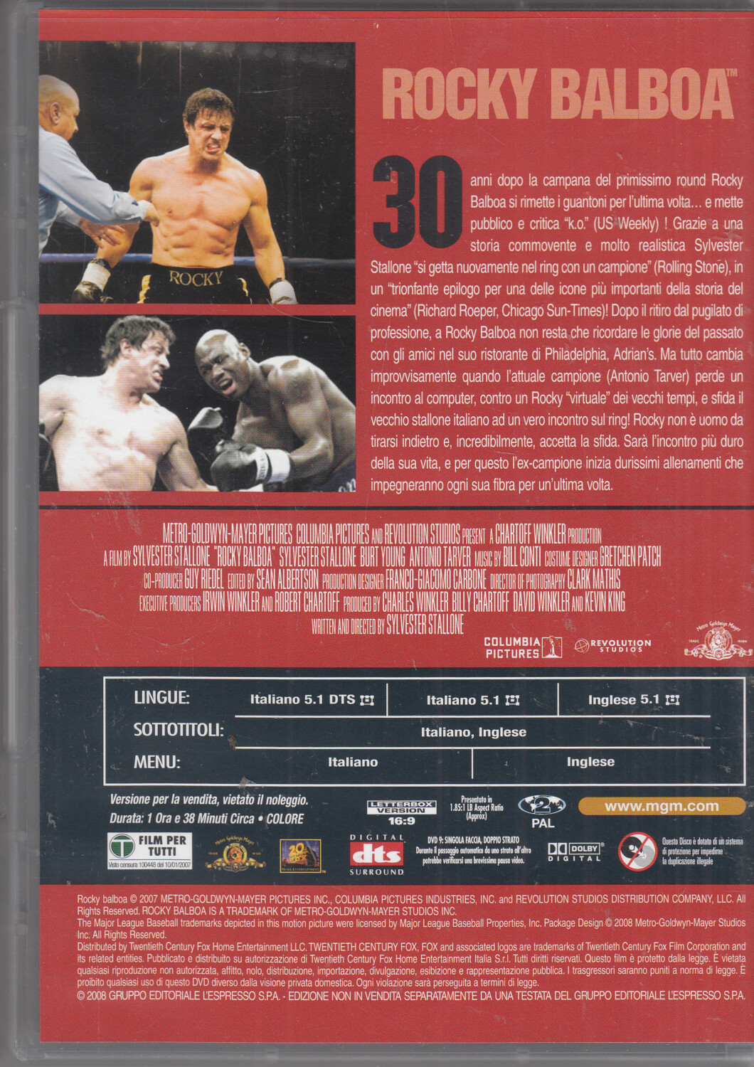 | Titolo: | Rocky Anthology (Sylvester Stallone) – Raccolta Completa (6 DVD) con Cofanetto – Versione da edicola – DVD in Italiano |