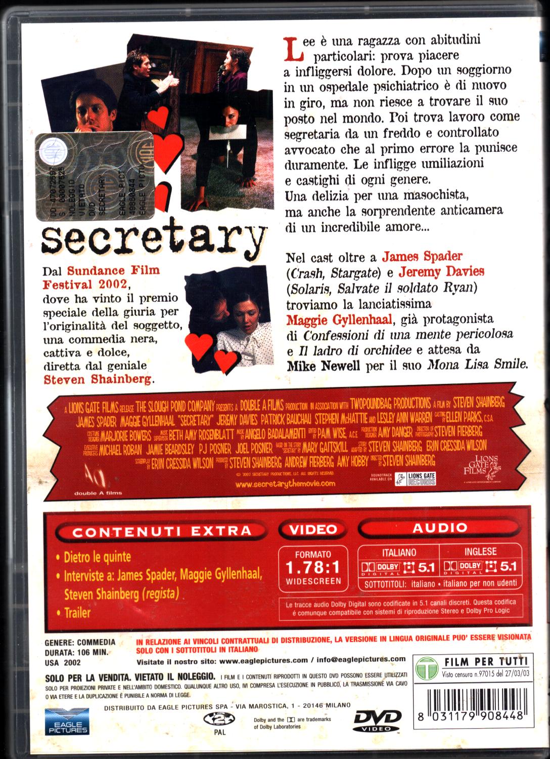 | Titolo: | Secretary DVD in Italiano James Spader |