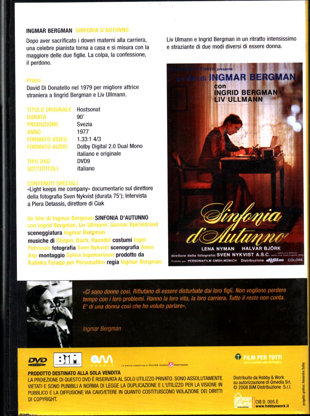 | Titolo: | SINFONIA D’AUTUNNO DVD in Italiano Versione da edicola Ingrid Brergman |