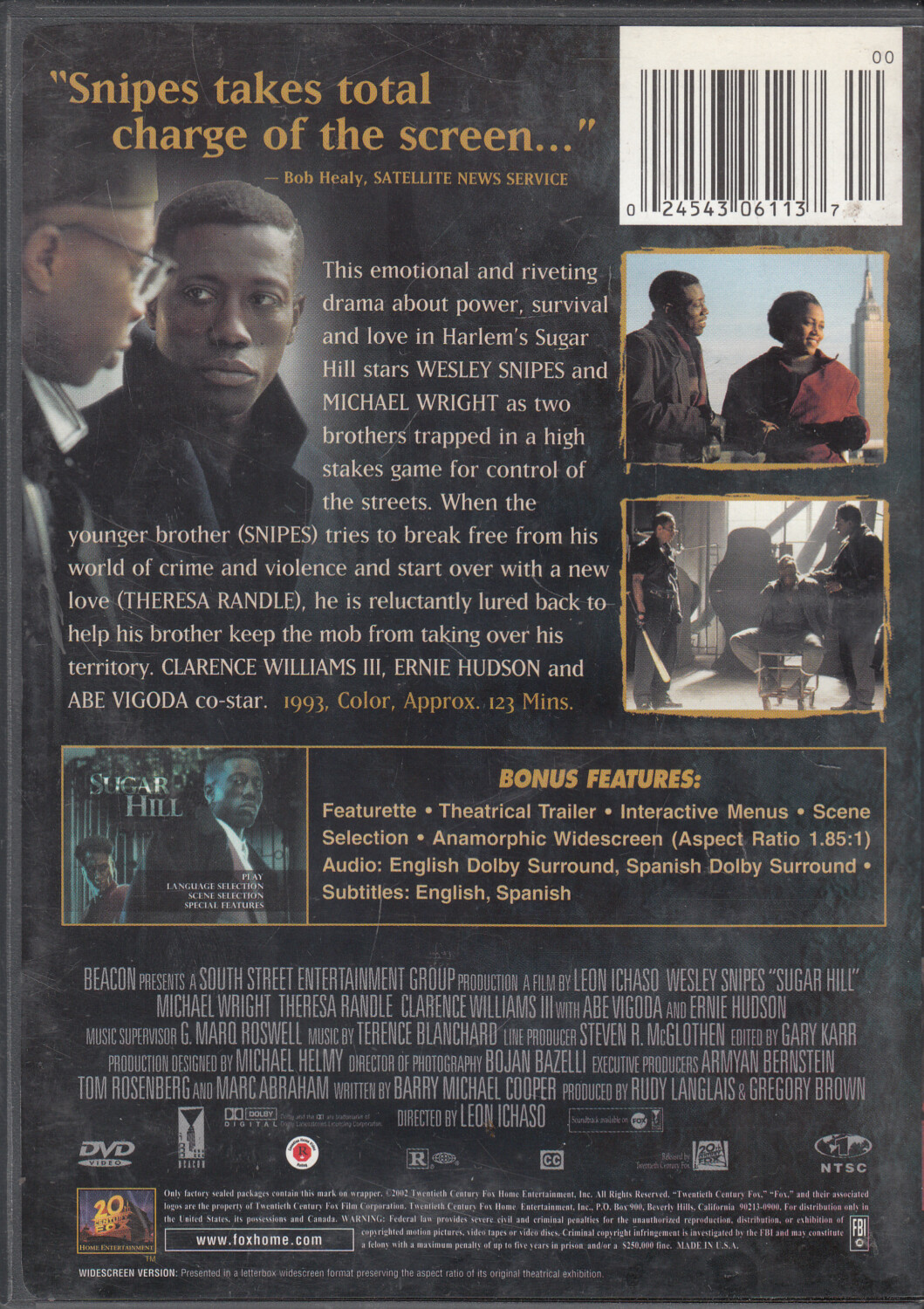 | Titolo: | Sugar Hill con Wesley Snipes. DVD Edizione Stati Uniti NTSC Regione 1, Lingua Inglese |