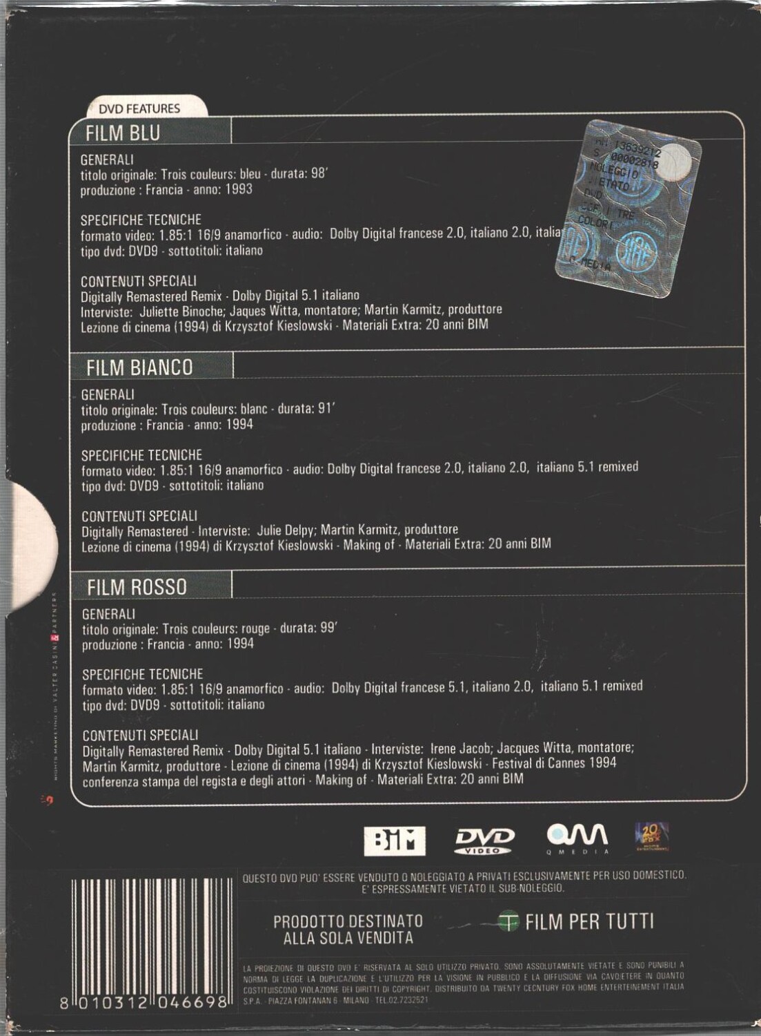 | Titolo: | Tre colori film Blu Bianco Rosso (Kieslowski) – (3 DVD) con Cofanetto – DVD in Italiano |