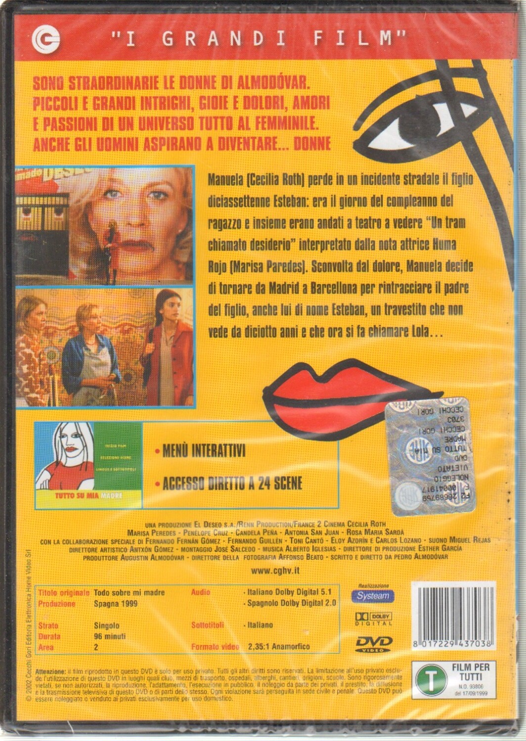 | Titolo: | Tutto su mia madre (Almodovar) – DVD in Italiano |